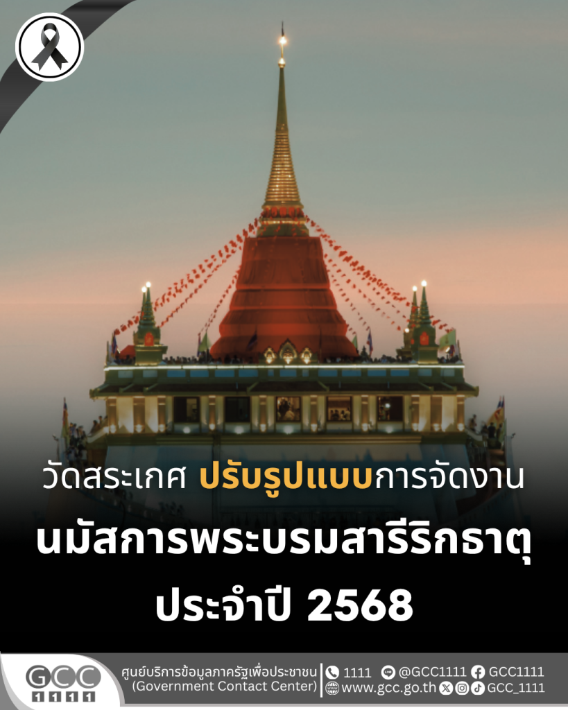 คณะกรรมการจัดงานนมัสการพระบรมสารีริกธาตุ ณ บรมบรรพต (ภูเขาทอง) วัดสระเกศ ราชวรมหาวิหาร ประจำปี 2568 มีมติปรับรูปแบบการจัดงาน ภายหลังสำนักพระราชวังประกาศเรื่องสมเด็จพระนางเจ้าสิริกิติ์ พระบรมราชินีนาถ พระบรมราชชนนีพันปีหลวง สวรรคต เพื่อแสดงความสำนึกในพระมหากรุณาธิคุณและถวายเป็นพระราชกุศล โดยเปิดให้พุทธศาสนิกชนร่วมสักการะพระบรมสารีริกธาตุและปูชนียสถานภายในวัด ระหว่างวันที่ 29 ตุลาคม – 7 พฤศจิกายน 2568 เวลา 07.00 – 24.00 น. พร้อมร่วมลงนามถวายอาลัยและพิธีเจริญจิตภาวนาหลังทำวัตรค่ำ ทั้งนี้ งดกิจกรรมภาคบันเทิงทั้งหมดในบริเวณรอบบรมบรรพต (ภูเขาทอง)