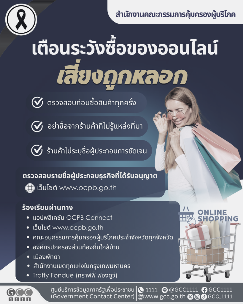 สำนักงานคณะกรรมการคุ้มครองผู้บริโภค (สคบ.) ออกประกาศเตือนภัยประชาชนทั่วประเทศ ให้เพิ่มความระวังในการซื้อสินค้าและบริการผ่านช่องทางออนไลน์ หลังพบแนวโน้มการร้องทุกข์จากผู้บริโภค “พุ่งสูงต่อเนื่อง” จากพฤติกรรมการซื้อขายบนโลกออนไลน์ที่ขยายตัวรวดเร็วเกินการควบคุม