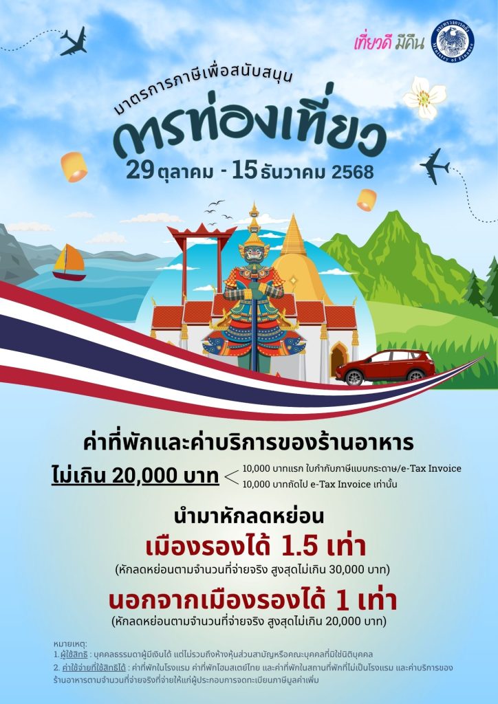 มาตรการภาษีเพื่อสนับสนุนการท่องเที่ยวภายในประเทศ ปี 2568 (เที่ยวดี มีคืน)