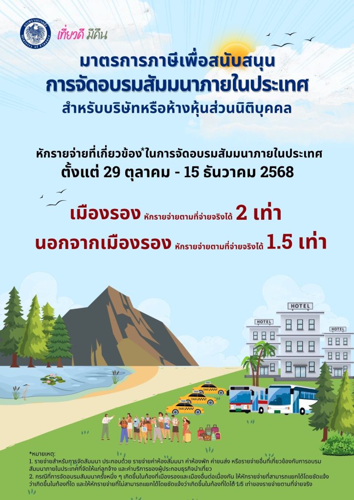 • มาตรการภาษีเพื่อสนับสนุนการจัดอบรมสัมมนาภายในประเทศ (สำหรับนิติบุคคล)