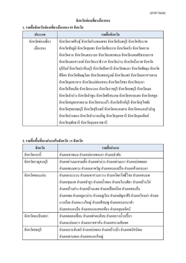 • งหวัดท่องเที่ยวรอง โดยแบ่งเป็นพื้นที่ทั้งจังหวัด 55 จังหวัด และ พื้นที่บางอำเภอในจังหวัดท่องเที่ยวหลัก 15 จังหวัด (หักรายจ่ายได้ 2 เท่า)