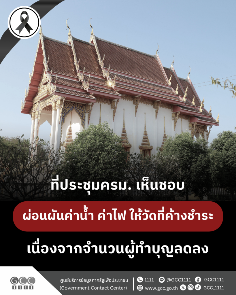 ครม. เห็นชอบมาตรการผ่อนผันค่าน้ำ ค่าไฟ ให้วัดที่ค้างชำระ เนื่องจากจำนวนผู้ทำบุญลดลง