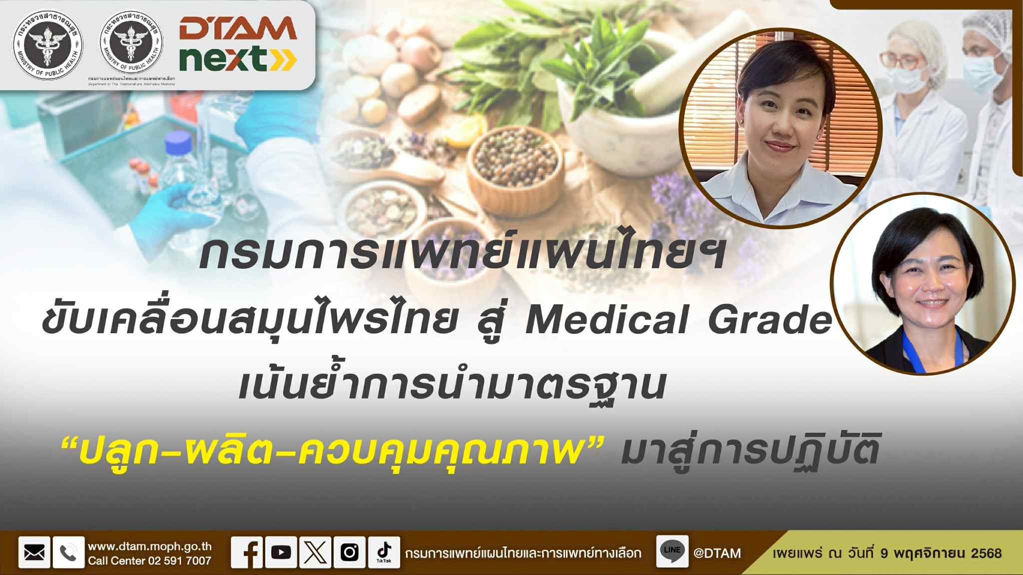 กรมการแพทย์แผนไทยฯ ผลักดันสมุนไพรไทยสู่ Medical Grade สร้างความเชื่อมั่นมาตรฐานคุณภาพครบวงจร