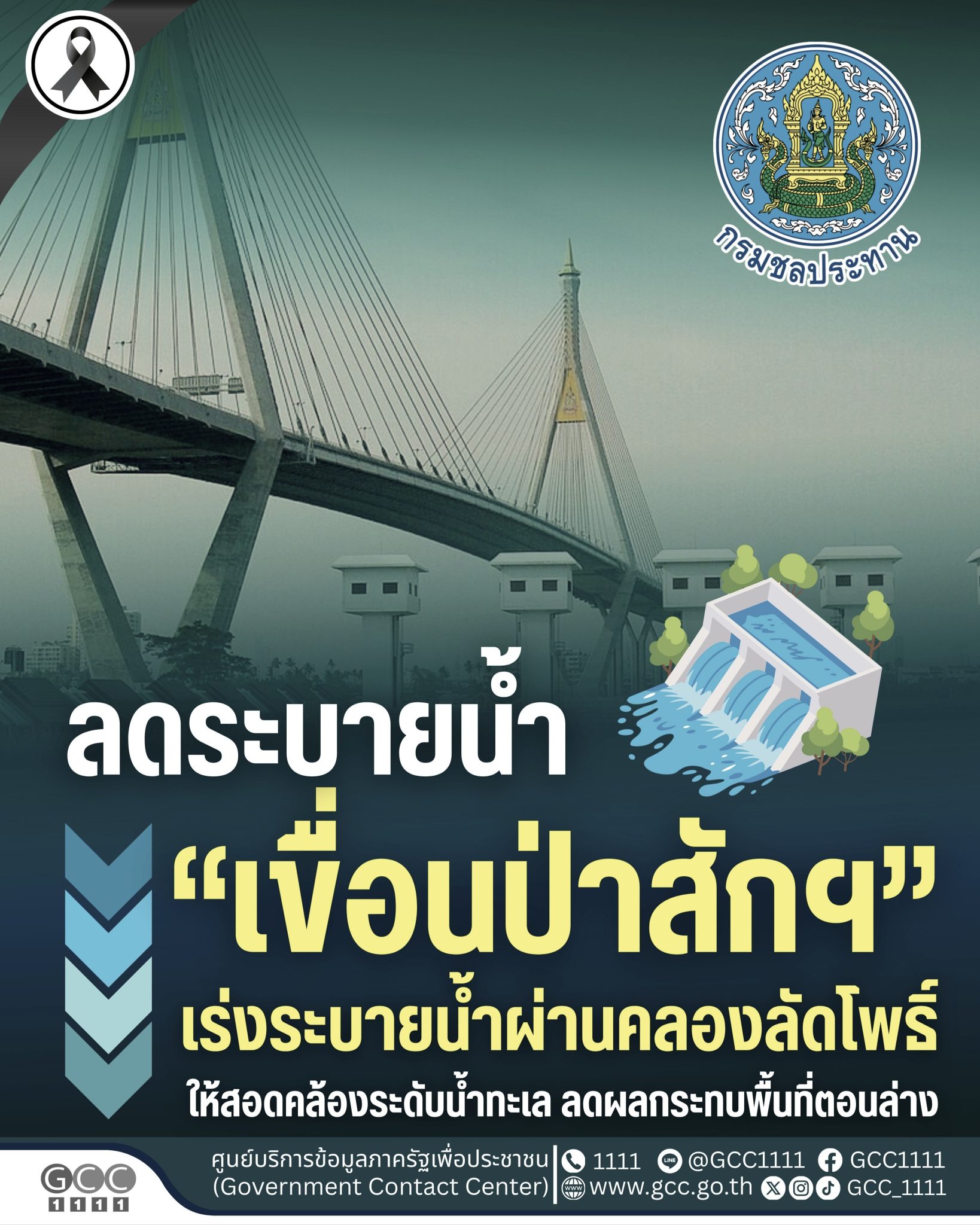 กรมชลประทาน บริหารน้ำเหนือเขื่อนเจ้าพระยา รับน้ำเข้าระบบรวม 600 ลบ.ม./วินาที น้ำท้ายเขื่อนเจ้าพระยาไหลผ่าน 2,800 ลบ.ม./วินาที ปรับลดการระบายน้ำเขื่อนป่าสักชลสิทธิ์ จาก 350 เหลือ 300 ลบ.ม./วินาที เพื่อลดผลกระทบพื้นที่ลุ่มต่ำ เดินเครื่องสูบน้ำและบริหารประตูคลองลัดโพธิ์ตามจังหวะน้ำทะเล มุ่งเร่งระบายน้ำสู่อ่าวไทยให้เร็วที่สุด