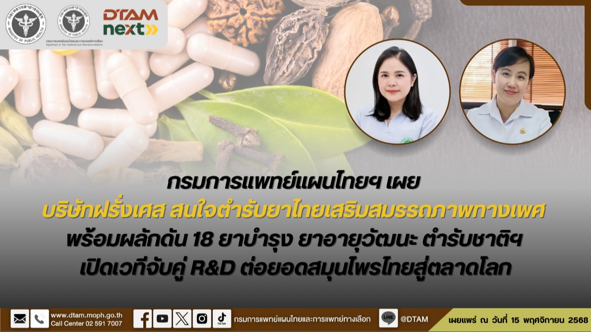 กรมการแพทย์แผนไทยฯ เปิดเผย บริษัทฝรั่งเศสสนใจตำรับยาไทยเสริมสมรรถภาพทางเพศ