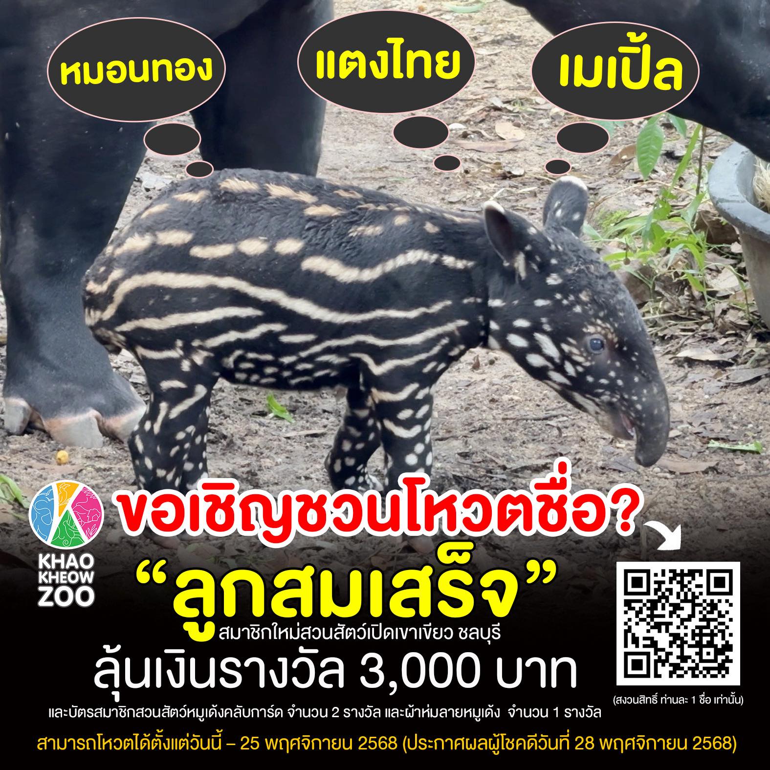 สวนสัตว์เปิดเขาเขียว เชิญชวนนักเที่ยวและประชาชนทั่วไปเข้าร่วมกิจกรรมโหวตเลือกชื่อ “ลูกสมเสร็จ” คือ “หมอนทอง แตงไทย หรือ เมเปิ้ล” ผ่านลิงก์ https://forms.gle/vDbajvSL9NPSZnJ6A ตั้งแต่บัดนี้ – 25 พฤศจิกายน 2568 เวลา 16.30 น.