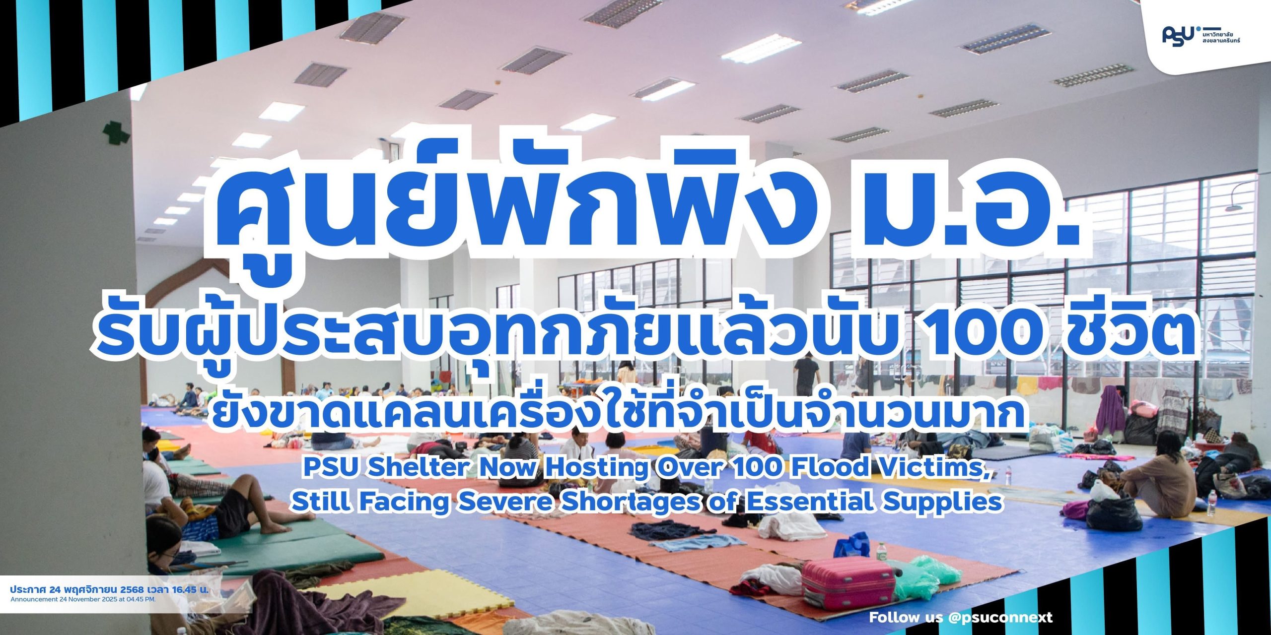 สำนักงานประชาสัมพันธ์จังหวัดสงขลา รายงานศูนย์พักพิง ศูนย์พักพิง มหาวิทยาลัยสงขลานครินทร์ วิทยาเขตหาดใหญ่ รับผู้ประสบอุทกภัยแล้วนับ 1,000 ชีวิต และใกล้เคียงแล้วนับ 100 ชีวิต โดยมีเจ้าหน้าที่กำลังดูแลทุกคนอย่างเต็มกำลัง ท่ามกลางสถานการณ์ที่ยังน่าเป็นห่วง ขณะนี้ยังมีผู้ประสบภัยจำนวนมากที่ต้องการความช่วยเหลืออย่างเร่งด่วน โดยเฉพาะเครื่องใช้จำเป็นต่อการดำรงชีพที่ยังขาดแคลน ไม่ว่าจะเป็นแปรงสีฟัน ยาสีฟัน สบู่ ผ้าขนหนู ผ้าห่ม เสื้อผ้า รวมถึงวัตถุดิบสำหรับประกอบอาหาร เช่น ข้าวสาร ไข่ไก่ และอาหารแห้งสำหรับจัดทำถุงยังชีพ ขอเชิญผู้มีจิตเมตตาร่วมสนับสนุนเพื่อให้ทุกคนสามารถก้าวผ่านวิกฤตครั้งนี้ไปด้วยกัน ท่านสามารถนำสิ่งของบริจาคมาส่งได้ที่ อาคารกีฬาและนันทนาการ ศูนย์กีฬาและสุขภาพ (ข้างโรงยิมเนเซียม ม.อ. หาดใหญ่)