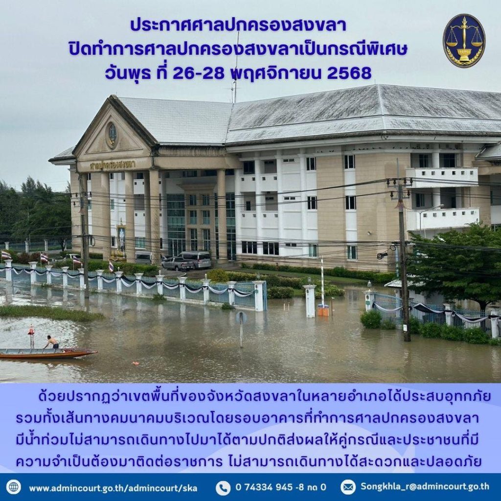 ศาลปกครองสงขลา ปิดทำการศาลปกครองสงขลาเป็นกรณีพิเศษ วันที่ 26 – 28 พ.ย. 2568 ข่าวสารกิจกรรม, สาธารณภัย ศาลปกครองสงขลา ปิดทำการศาลปกครองสงขลาเป็นกรณีพิเศษ วันที่ 26 – 28 พ.ย. 2568 ที่มา : Facebook : ศาลปกครองสงขลา Post Views: 7 FacebookFacebookXTwitterLINELine