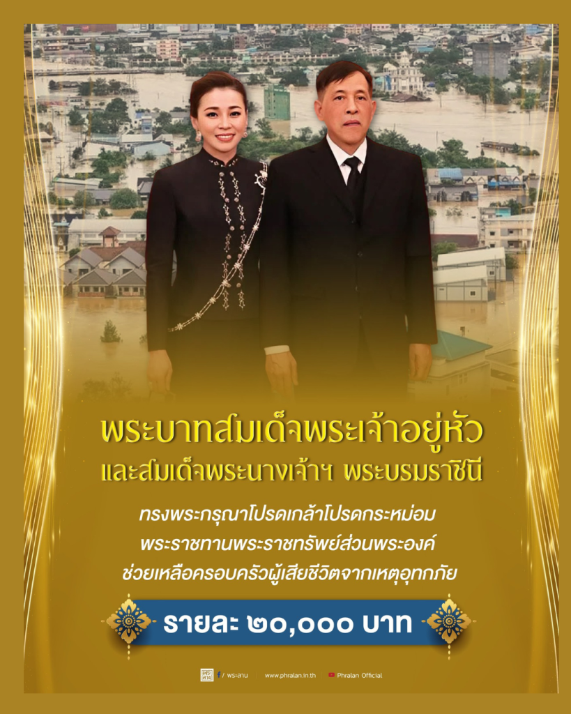 ในหลวง–พระราชินี พระราชทานพระราชทรัพย์ช่วยครอบครัวผู้เสียชีวิตจากอุทกภัย รายละ 20,000 บาท ข่าวสารกิจกรรม, สาธารณภัย ในหลวง–พระราชินี พระราชทานพระราชทรัพย์ช่วยครอบครัวผู้เสียชีวิตจากอุทกภัย รายละ 20,000 บาท พระบาทสมเด็จพระเจ้าอยู่หัว และสมเด็จพระนางเจ้าฯ พระบรมราชินี ทรงพระกรุณาโปรดเกล้าโปรดกระหม่อม พระราชทานพระราชทรัพย์ส่วนพระองค์ ช่วยเหลือครอบครัวผู้เสียชีวิตจากเหตุอุทกภัย รายละ 20,000 บาท พระบาทสมเด็จพระเจ้าอยู่หัว และสมเด็จพระนางเจ้าฯ พระบรมราชินี ทรงพระกรุณาโปรดเกล้าโปรดกระหม่อม พระราชทานพระราชทรัพย์ส่วนพระองค์ ช่วยเหลือครอบครัวผู้เสียชีวิตจากเหตุอุทกภัย รายละ 20,000 บาท โดยนายกรัฐมนตรีสั่งการให้เร่งดำเนินการตามประเพณี พร้อมจัดทำรายงานแจ้งราชเลขานุการในพระองค์ เพื่อกราบบังคมทูลให้ทรงทราบต่อไป ที่มา : Facebook พระลาน Post Views: 60 FacebookFacebookXTwitterLINELine