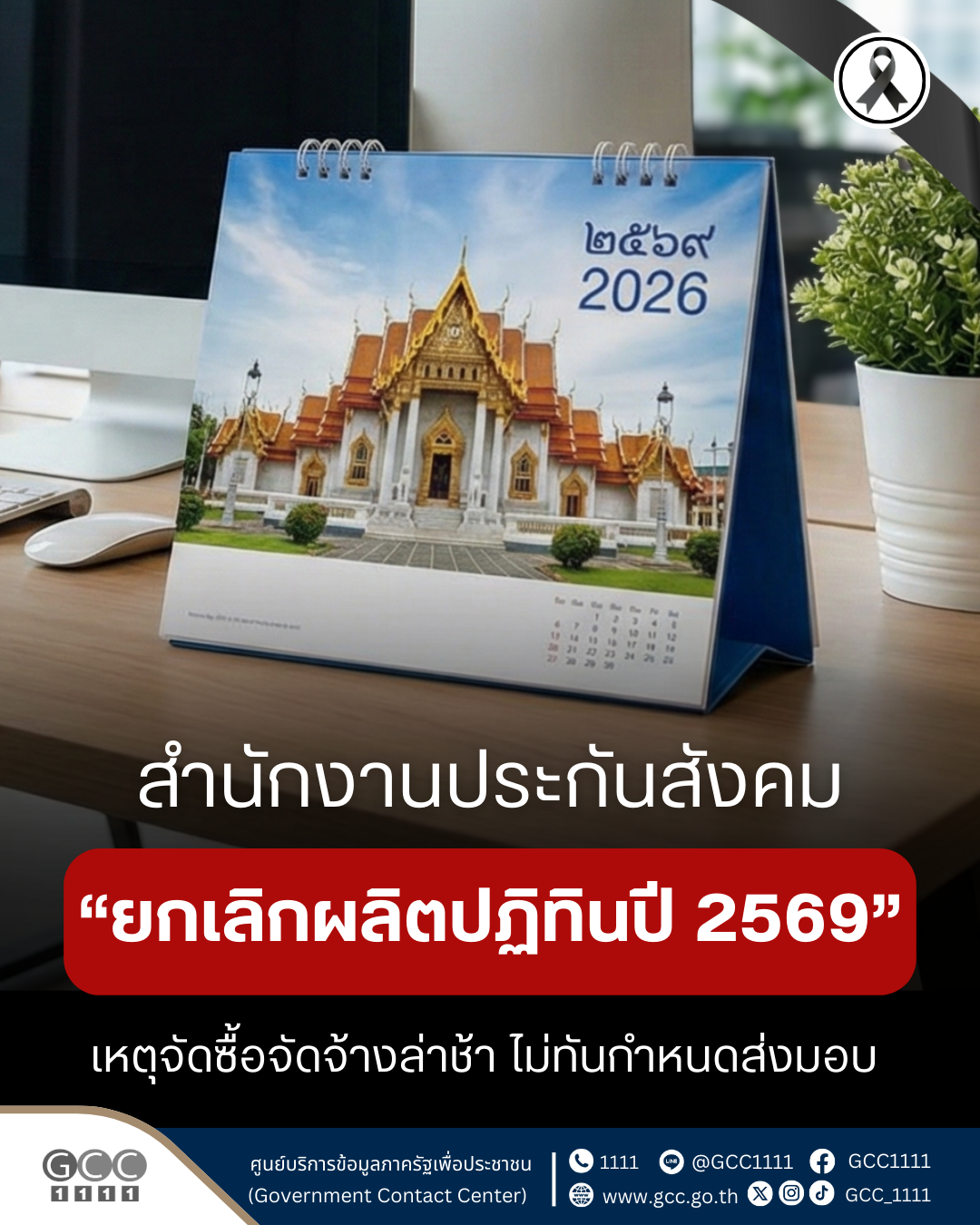 สำนักงานประกันสังคม ยกเลิกการจัดทำปฏิทินประกันสังคม ประจำปี 2569 เหตุจัดซื้อจัดจ้างล่าช้า