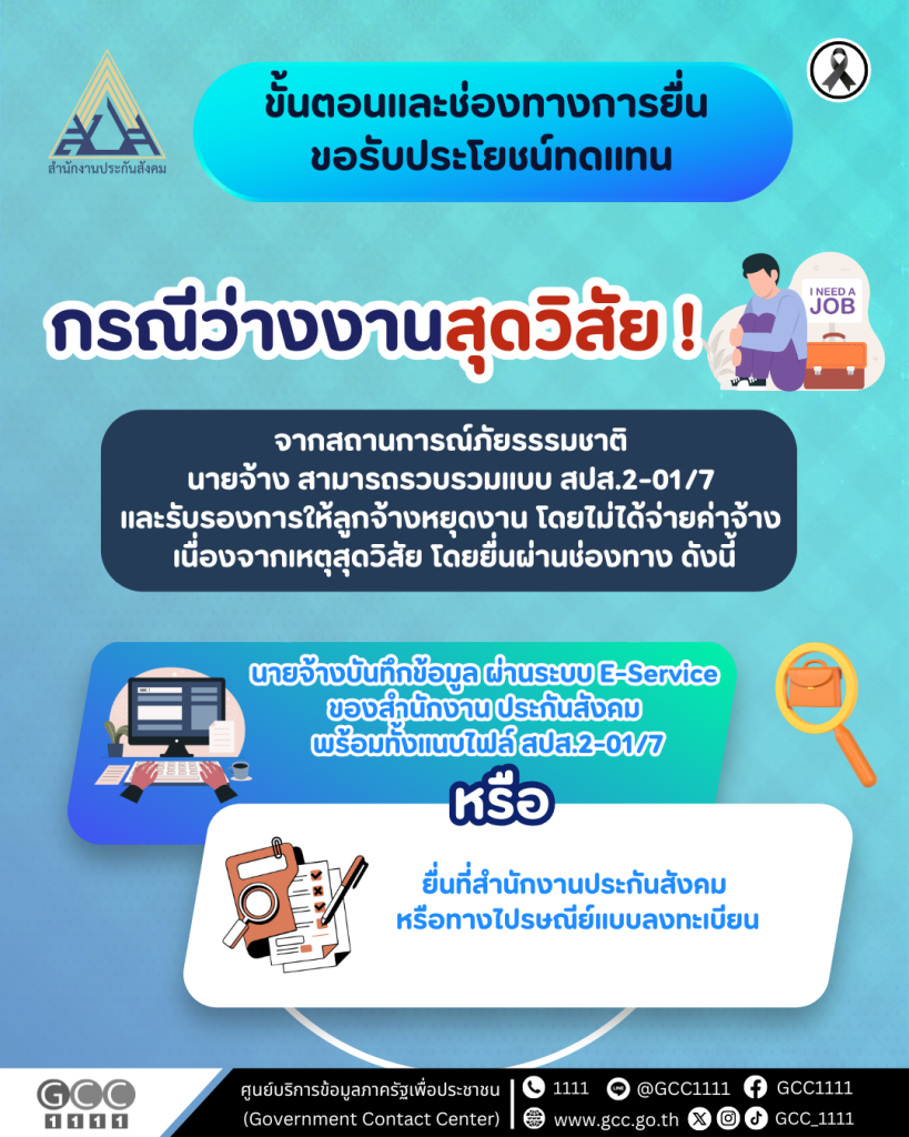 สำนักงานประกันสังคม แนะนำว่างงานจากเหตุสุดวิสัย ไม่ต้องกังวล