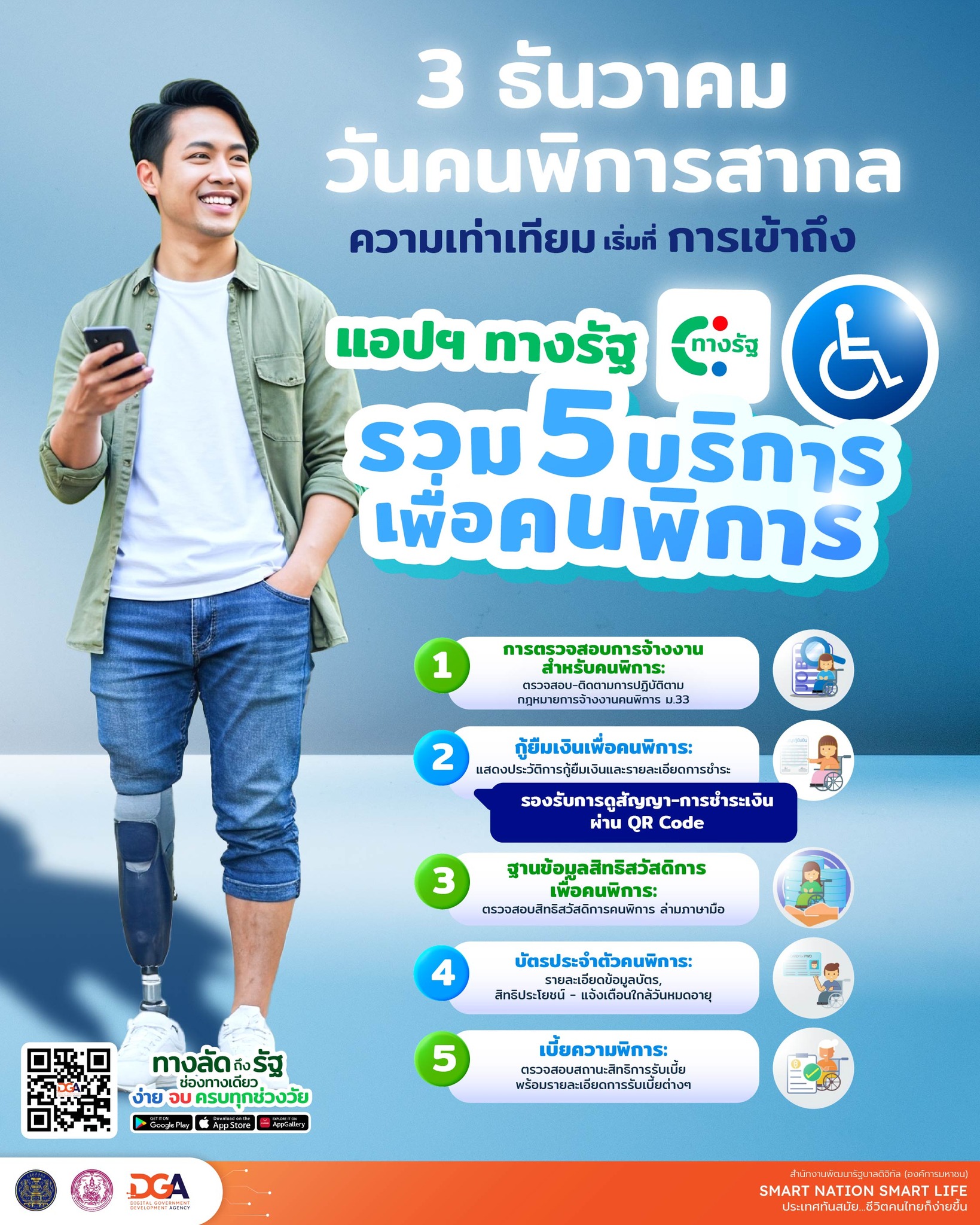 DGA แนะนำ 5 บริการสำคัญสำหรับคนพิการบนแอปฯ ทางรัฐ อำนวยความสะดวกเข้าถึงสิทธิได้ง่ายขึ้น