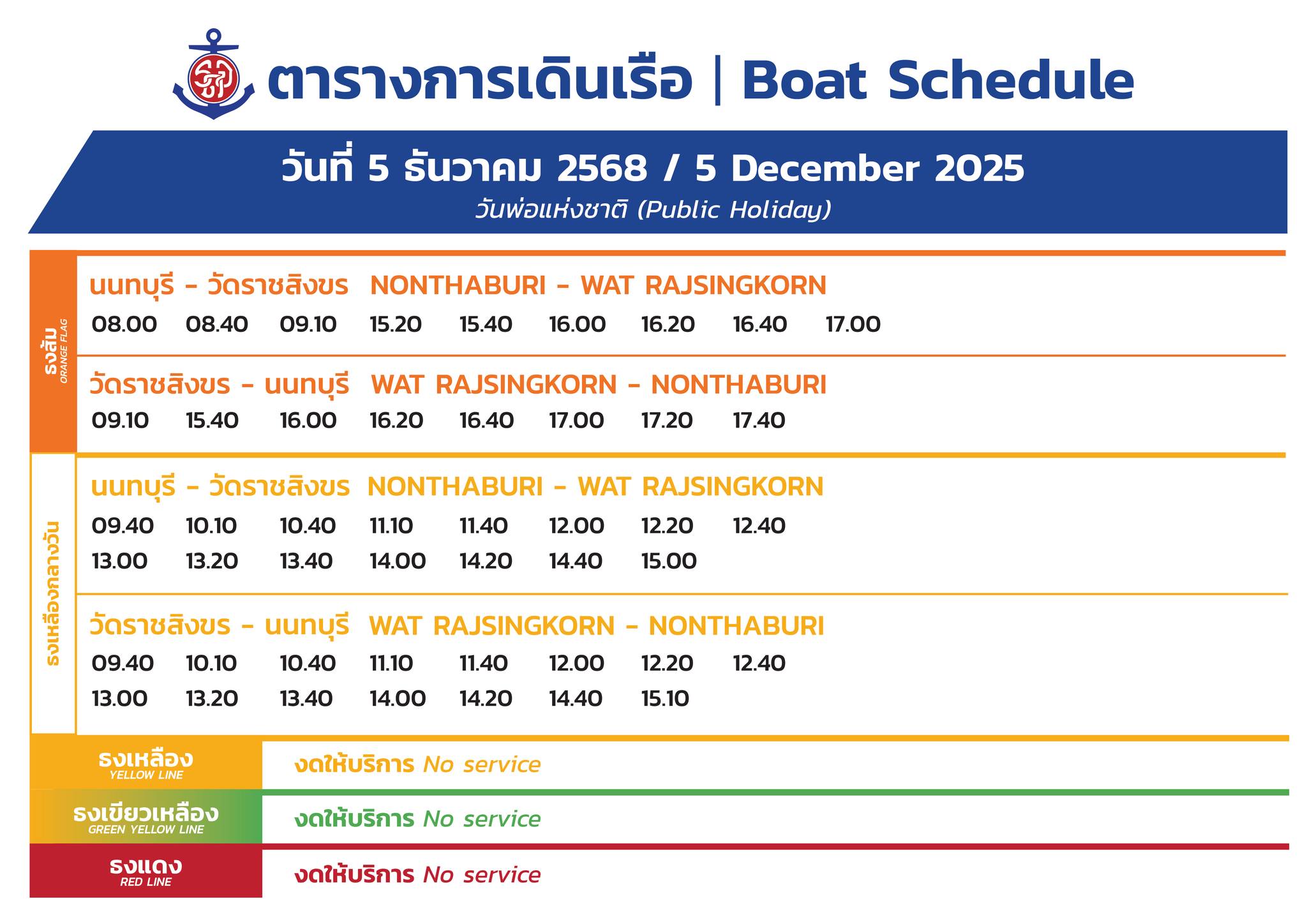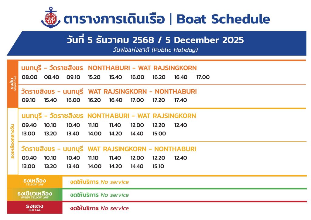 • เรือด่วนเจ้าพระยา แจ้งตารางเวลาการให้บริการเรือโดยสาร เฉพาะวันที่ 5 ธันวาคม 2568 (วันพ่อแห่งชาติ)