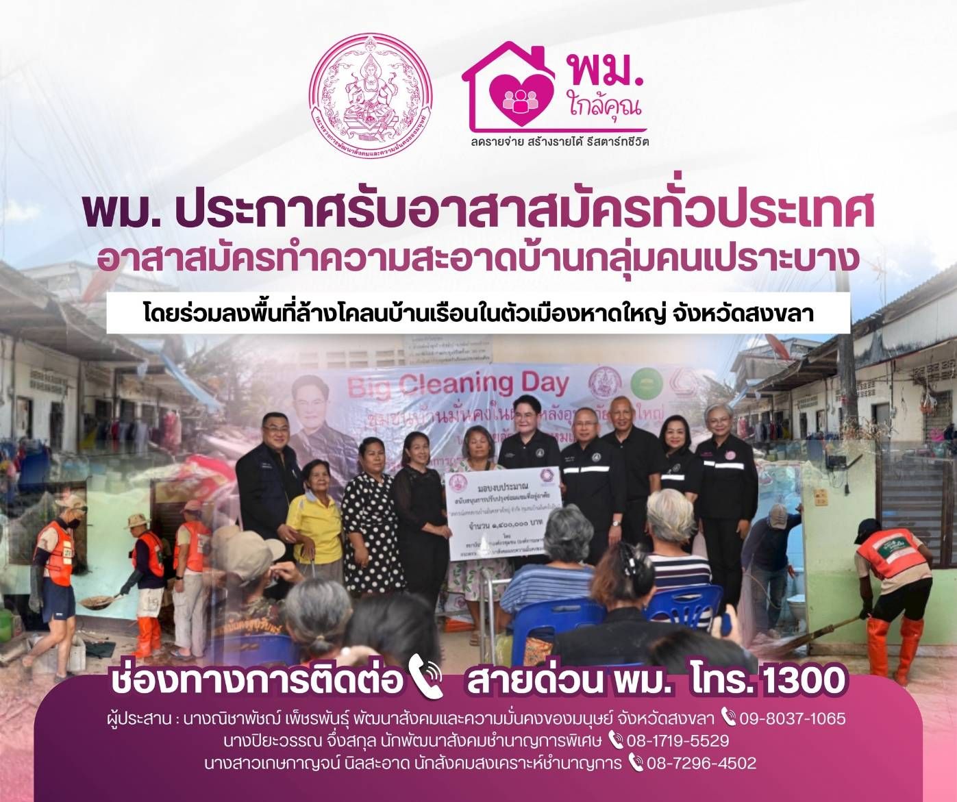 พม. เปิดรับอาสาสมัครทั่วประเทศช่วยทำความสะอาดบ้านกลุ่มคนเปราะบางในเขตเมืองหาดใหญ่ ข่าวสารกิจกรรม, สาธารณภัย พม. เปิดรับอาสาสมัครทั่วประเทศช่วยทำความสะอาดบ้านกลุ่มคนเปราะบางในเขตเมืองหาดใหญ่ กระทรวงการพัฒนาสังคมและความมั่นคงของมนุษย์ ประกาศรับสมัครอาสาสมัครทั่วประเทศ อาสาสมัครทำความสะอาดบ้านกลุ่มคนเปราะบาง โดยร่วมลงพื้นที่ล้างโคลนบ้านเรือนในตัวเมืองหาดใหญ่ จังหวัดสงขลาช่องทางการติดต่อสายด่วน พม. โทร. 1300ผู้ประสาน :นางณิชาพัชฌ์ เพ็ชรพันธุ์ พัฒนาสังคมและความมั่นคงของมนุษย์ จังหวัดสงขลา โทร. 09 8037 1065นางปิยะวรรณ จึ่งสกุล นักพัฒนาสังคมชํานาญการพิเศษ โทร. 08 1719 5529นางสาวเกษกาญจน์ นิลสะอาด นักสังคมสงเคราะห์ชํานาญการ โทร.08 7296 4502 ที่มา : Facebook กระทรวงการพัฒนาสังคมและความมั่นคงของมนุษย์ Post Views: 19 FacebookFacebookXTwitterLINELine