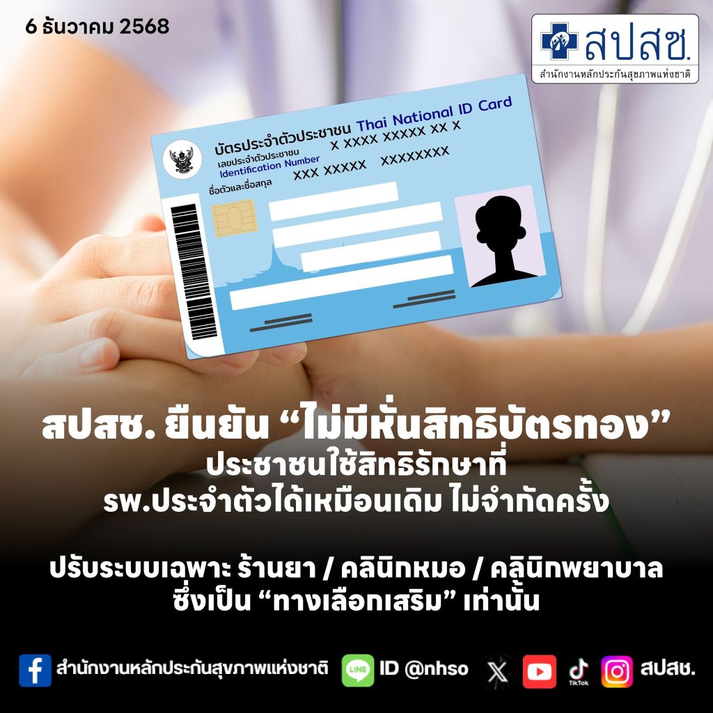 สปสช. ยืนยันว่า “ไม่มีการปรับลดสิทธิบัตรทอง” ประชาชนยังรักษาที่ โรงพยาบาลประจำตัวได้เหมือนเดิม