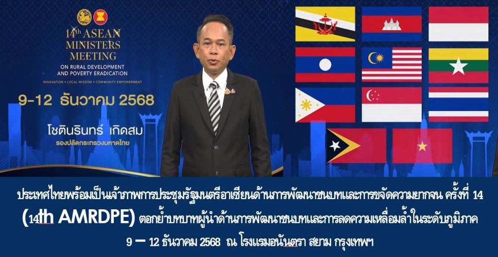 ประเทศไทย พร้อมเป็นเจ้าภาพการประชุมรัฐมนตรีอาเซียนด้านการพัฒนาชนบทและการขจัดความยากจน ครั้งที่ 14 ระหว่างวันที่ 9 – 12 ธันวาคม 2568 ณ โรงแรมอนันตรา สยาม กรุงเทพมหานคร