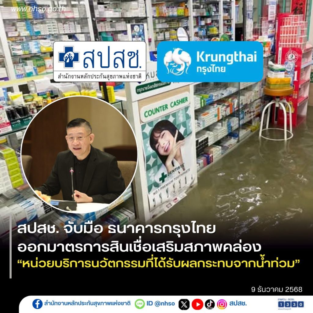 สปสช. ร่วมกับ ธนาคารกรุงไทย ออกมาตรการสินเชื่อเสริมสภาพคล่อง ช่วยผู้ประสบภัยน้ำท่วม