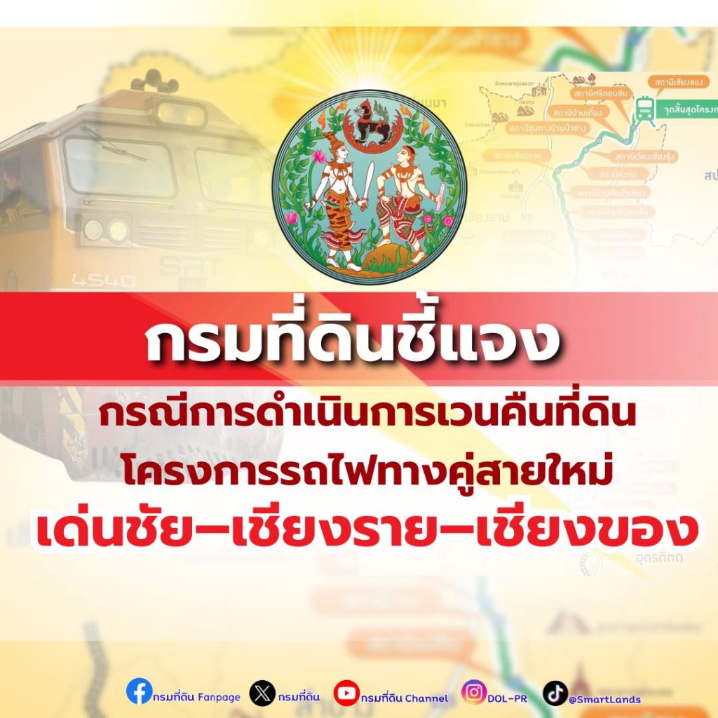 กรมที่ดิน ชี้แจงกรณีการดำเนินการเวนคืนที่ดิน โครงการรถไฟทางคู่สายใหม่ เด่นชัย–เชียงราย–เชียงของ