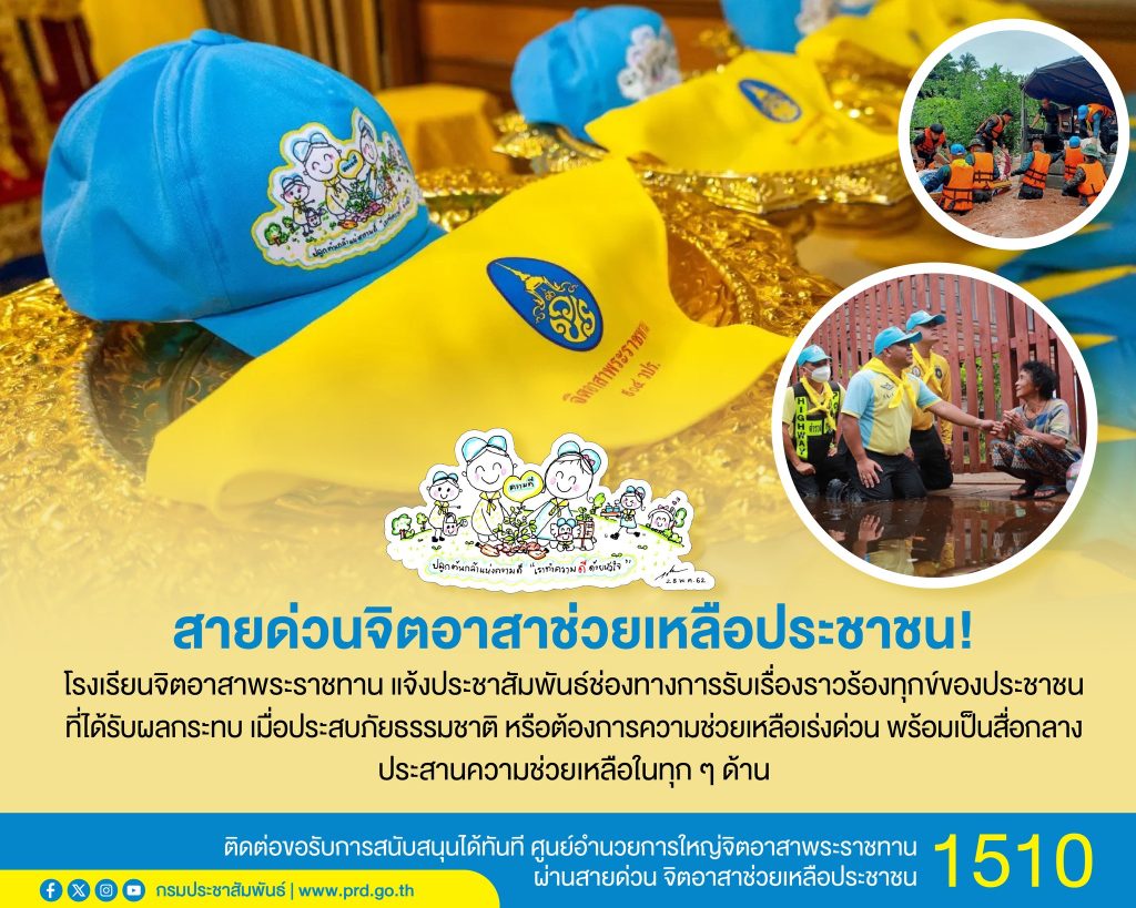 โรงเรียนจิตอาสาพระราชทาน เปิดสายด่วน 1510 รับแจ้งเหตุเดือดร้อน – ประสานช่วยเหลือผู้ประสบภัยทั่วประเทศ ข่าวสารกิจกรรม, สาธารณภัย โรงเรียนจิตอาสาพระราชทาน เปิดสายด่วน 1510 รับแจ้งเหตุเดือดร้อน – ประสานช่วยเหลือผู้ประสบภัยทั่วประเทศ โรงเรียนจิตอาสาพระราชทาน ประชาสัมพันธ์ช่องทางรับเรื่องราวร้องทุกข์จากประชาชนที่ได้รับความเดือดร้อน ผ่าน สายด่วนจิตอาสาช่วยเหลือประชาชน หมายเลข 1510 โรงเรียนจิตอาสาพระราชทาน ร่วมกับสำนักงานปลัดสำนักนายกรัฐมนตรี ขอประชาสัมพันธ์ช่องทางการรับเรื่องราวร้องทุกข์จากประชาชนที่ได้รับความเดือดร้อน หรือได้รับผลกระทบจากสถานการณ์ภัยพิบัติทางธรรมชาติ ตลอดจนกรณีที่ต้องการความช่วยเหลือเร่งด่วน โดยทำหน้าที่เป็นศูนย์กลางในการประสานการให้ความช่วยเหลือในทุกมิติอย่างเป็นระบบและทันท่วงที ทั้งนี้ ประชาชนสามารถติดต่อขอรับการสนับสนุนและแจ้งขอความช่วยเหลือได้โดยตรงที่ ศูนย์อำนวยการใหญ่จิตอาสาพระราชทาน ผ่าน สายด่วนจิตอาสาช่วยเหลือประชาชน หมายเลขโทรศัพท์ 1510 ซึ่งเปิดให้บริการเพื่อดูแลและช่วยเหลือประชาชนอย่างใกล้ชิด อันเป็นการบรรเทาความเดือดร้อนและเสริมสร้างความเข้มแข็งให้กับสังคมอย่างยั่งยืน ที่มา : Facebook พระลาน Post Views: 17 FacebookFacebookXTwitterLINELine