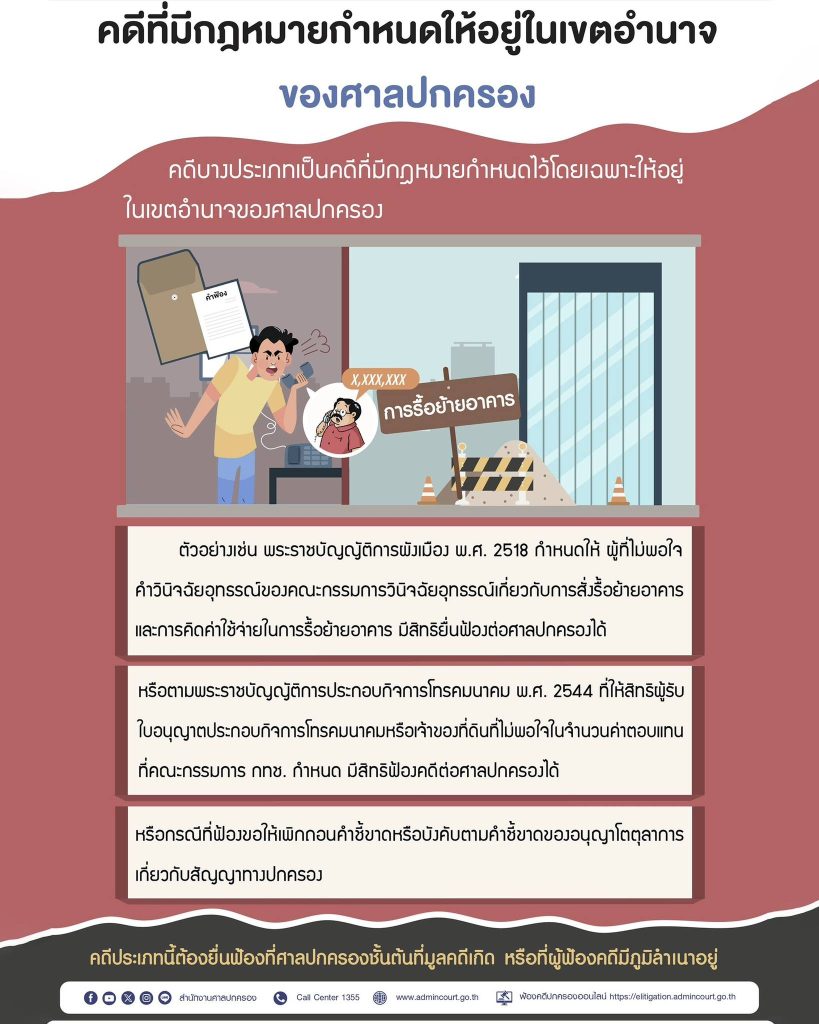 สำนักงานศาลปกครอง แนะนำรอบรู้เรื่องศาลปกครอง คดีที่มีกฎหมายกำหนดให้อยู่ในเขตอำนาจของศาลปกครอง