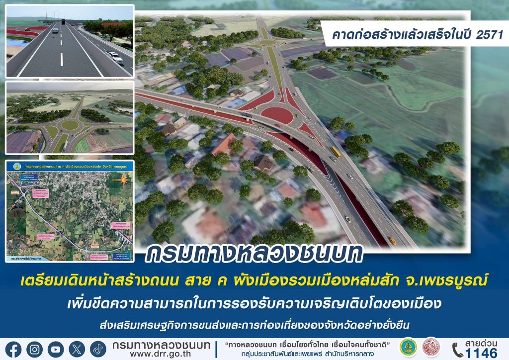 เพิ่มขีดความสามารถในการรองรับความเจริญเติบโตของเมือง ส่งเสริมเศรษฐกิจด้านการขนส่งและการท่องเที่ยวของจังหวัดเพชรบูรณ์อย่างยั่งยืน คาดก่อสร้างแล้วเสร็จในปี 2571 กรมทางหลวงชนบท (ทช.) ได้ดำเนินโครงการก่อสร้างถนน สาย ค ผังเมืองรวมเมืองหล่มสัก จังหวัดเพชรบูรณ์