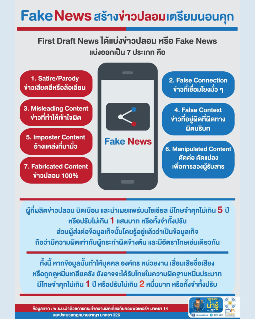 กระทรวงยุติธรรม แนะนำความรู้ ข่าวปลอม หรือ Fake News มี 7 ประเภท