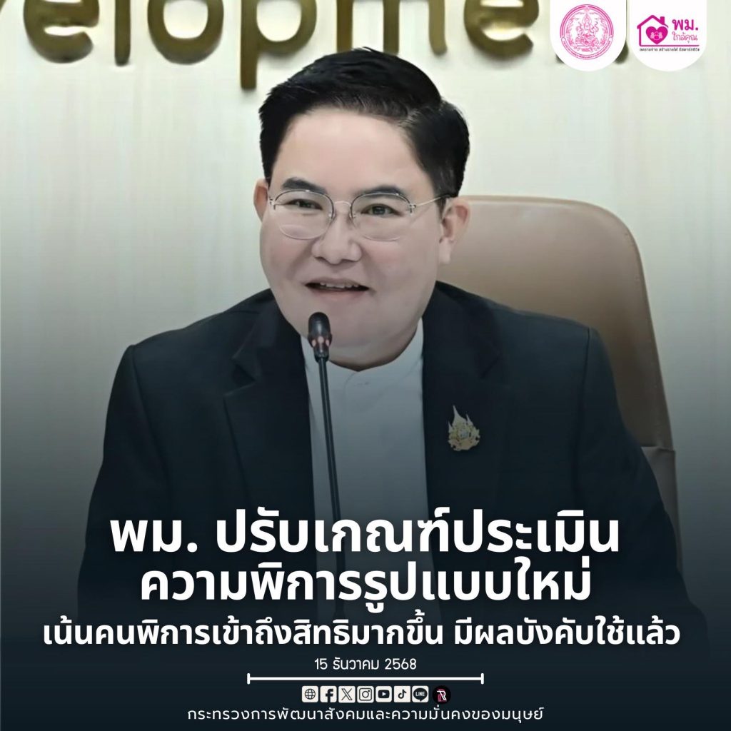 พม. ปรับเกณฑ์ประเมินความพิการรูปแบบใหม่ เน้นคนพิการเข้าถึงสิทธิมากขึ้น มีผลบังคับใช้แล้ว