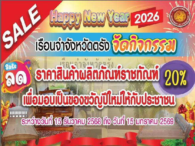 เรือนจําจังหวัดตรัง ราคาสินค้าผลิตภัณฑ์ราชทัณฑ์ 20% เพื่อมอบเป็นของขวัญปีใหม่ให้กับประชาชน ระหว่างวันที่ 15 ธันวาคม 2568 ถึง วันที่ 15 มกราคม 2569