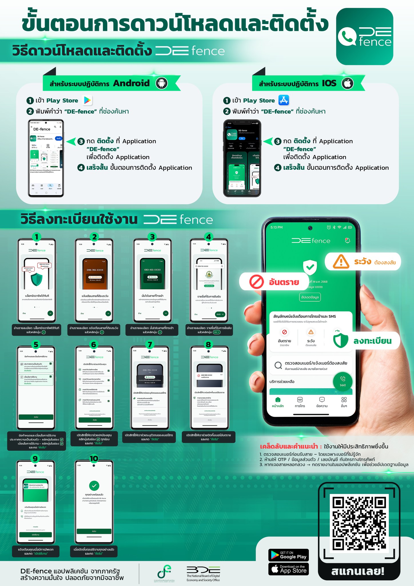 ดีอี แนะนำขั้นตอนการดาวน์โหลดและติดตั้ง แอปพลิเคชัน DEfence ผู้ช่วยปกป้องคุณจากภัยมิจฉาชีพ