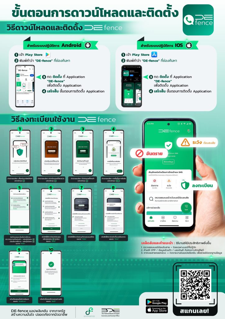 กระทรวงดิจิทัลเพื่อเศรษฐกิจและสังคม แนะนำขั้นตอนการดาวน์โหลดและติดตั้ง แอปพลิเคชัน DEfence ผู้ช่วยปกป้องคุณจากภัยมิจฉาชีพ