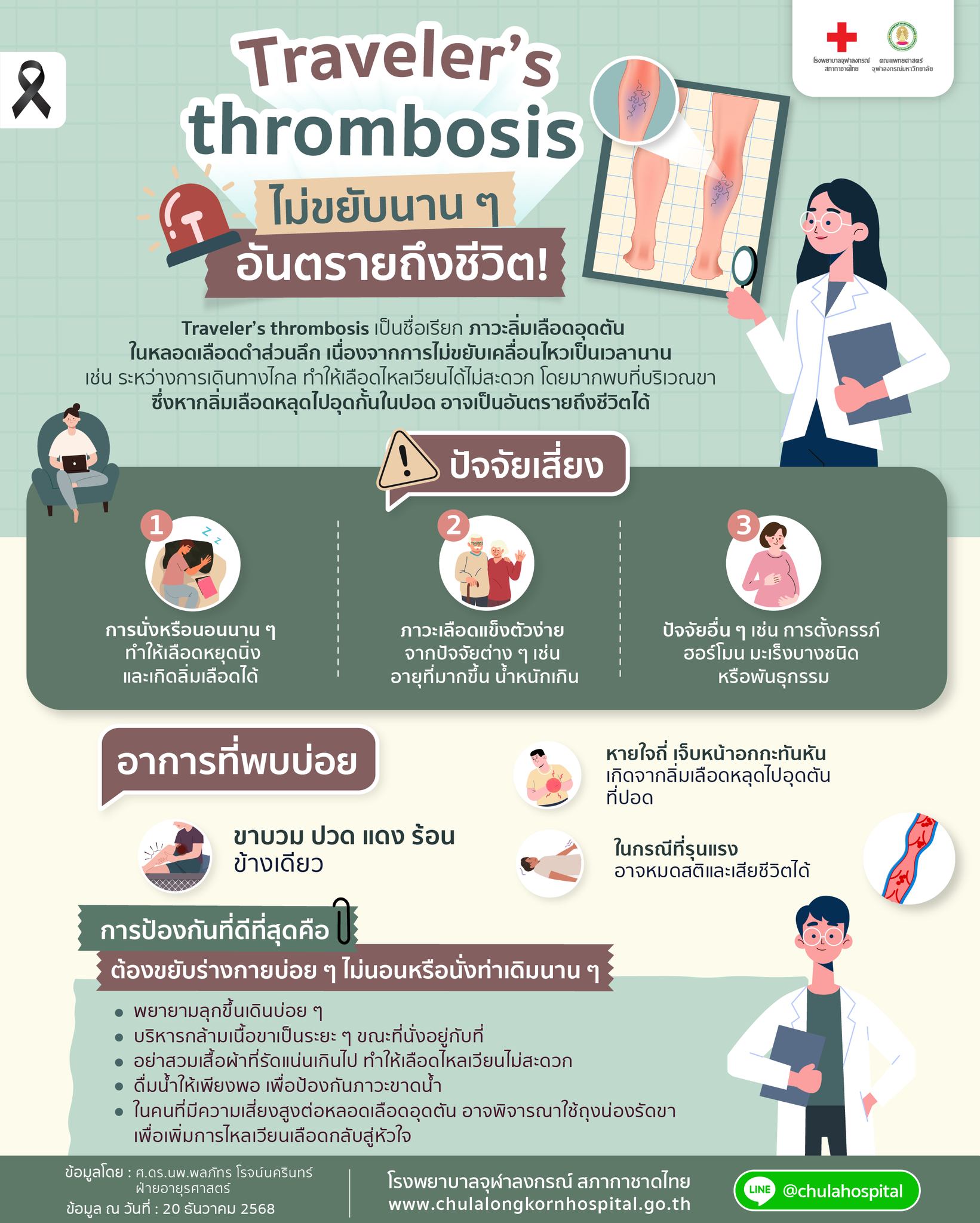โรงพยาบาลจุฬาลงกรณ์ แจ้งเตือน Traveler’s thrombosis ไม่ขยับนาน ๆ อันตรายถึงชีวิต