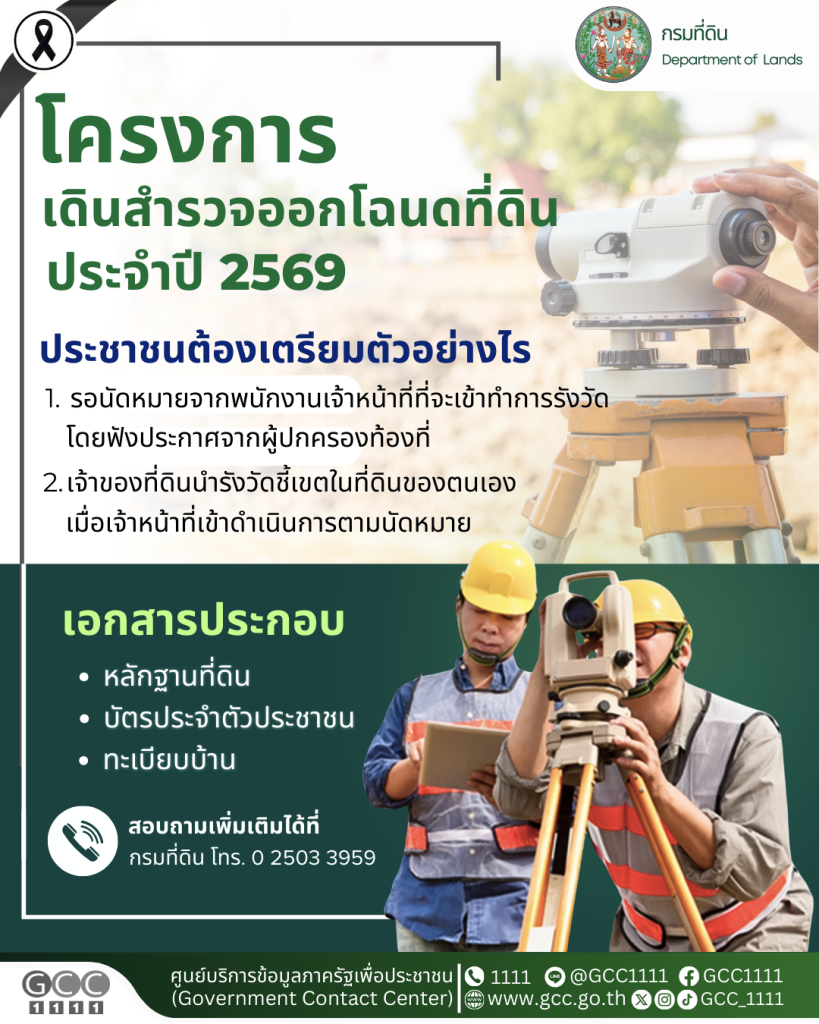 กรมที่ดิน จัดโครงการเดินสำรวจออกโฉนดที่ดิน 2569