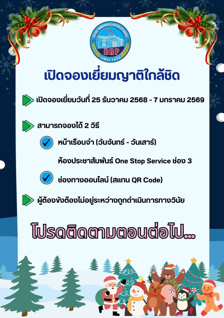 เรือนจำพิเศษกรุงเทพมหานคร เปิดจองเยี่ยมญาติใกล้ชิด วันที่ 25 ธันวาคม 2568 – 7 มกราคม 2569