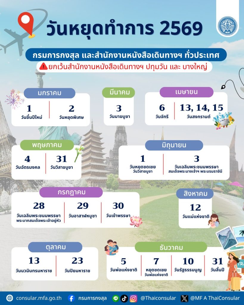 กรมการกงสุล ประกาศวันหยุดทำการ ปี 2569