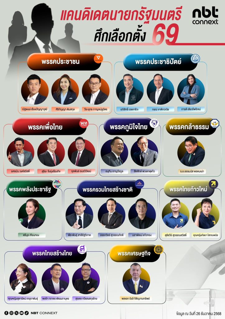 เปิดแคนดิเดตนายกรัฐมนตรีแต่ละพรรค ศึกเลือกตั้ง 2569