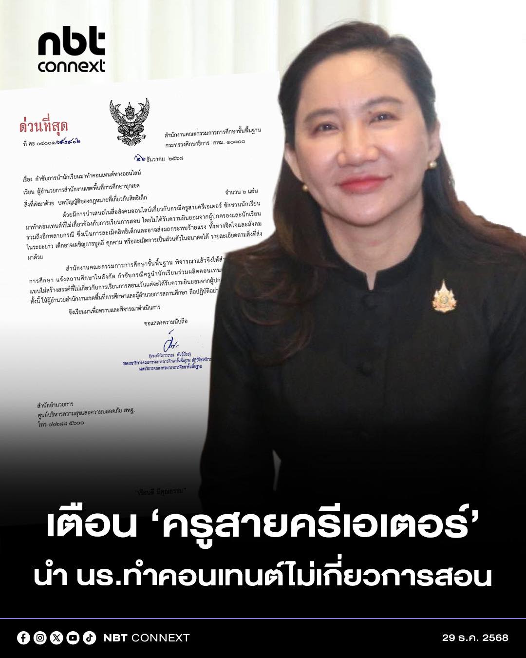 นางภัตริยาวรรณ พันธุ์น้อย รองเลขาธิการคณะกรรมการการศึกษานั้นพื้นฐาน ปฏิบัติราชการแทนเลขาธิการคณะกรรมการการศึกษาขั้นพื้นฐาน ทำหนังสือด่วนที่สุดระบุว่า ด้วยมีการนำเสนอในสื่อสังคมออนไลน์เกี่ยวกับกรณีครูสายครีเอเตอร์ ชักชวนนักเรียนมาทำคอนเทนต์ที่ไม่เกี่ยวข้องกับการเรียนการสอน โดยไม่ได้รับความยินยอมจากผู้ปกครองและนักเรียนรวมถึงอีกหลายกรณี ซึ่งเป็นการละเมิดสิทธิเด็กและอาจส่งผลกระทบร้ายแรง ทั้งทางจิตใจและสังคมในระยะยาว เด็กอาจเผชิญการบูลลี่ คุกคาม หรือละเมิดการเป็นส่วนตัวในอนาคตได้ รายละเอียดตามสิ่งที่ส่งมาด้วยสำนักงานคณะกรรมการการศึกษาขั้นพื้นฐาน พิจารณาแล้วจึงให้สำนักงานเขตพื้นที่การศึกษา แจ้งสถานศึกษาในสังกัด กำซับกรณีครูนำนักเรียนร่วมผลิตคอนเทนต์ผ่านสื่อออนไลน์แบบไม่สร้างสรรค์ที่ไม่เกี่ยวกับการเรียนการสอนเว้นแต่จะได้รับความยินยอมจากผู้ปกครองและผู้ปกครอง ทั้งนี้ ให้ผู้อำนวยสำนักงานเขตพื้นที่การศึกษาและผู้อำนวยการสถานศึกษา ถือปฏิบัติอย่างเคร่งครัดจึงเรียนมาเพื่อทราบและพิจารณาดำเนินการ