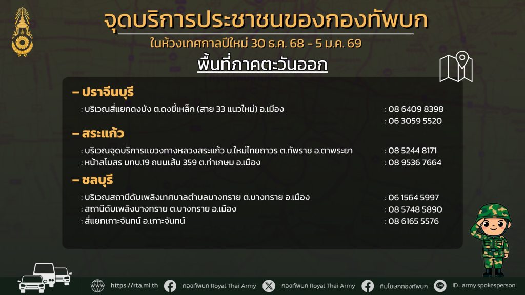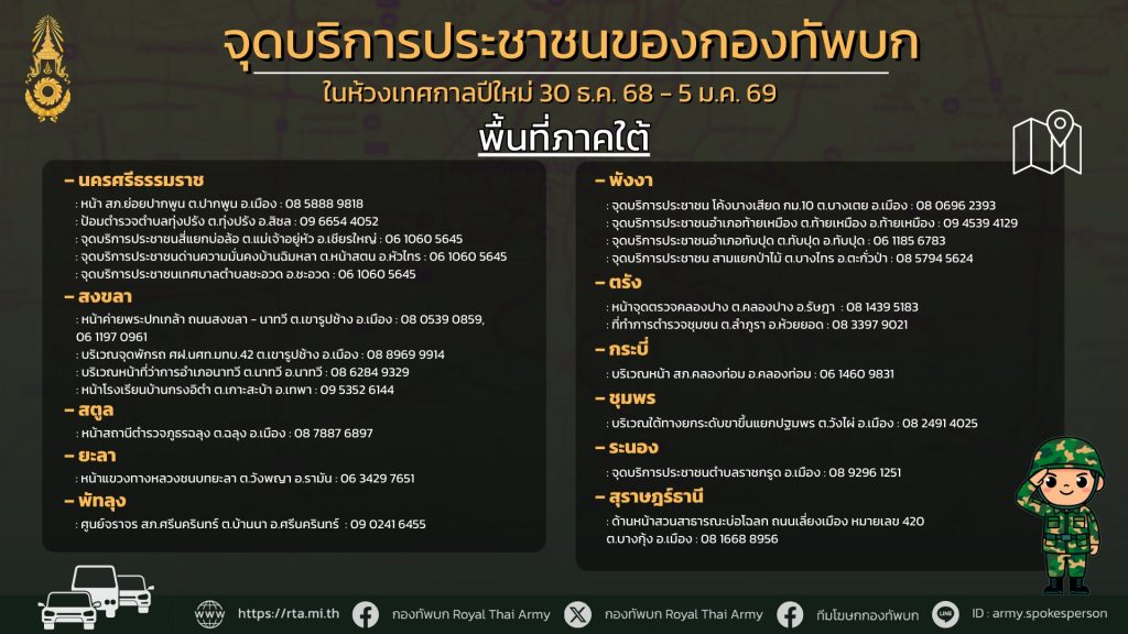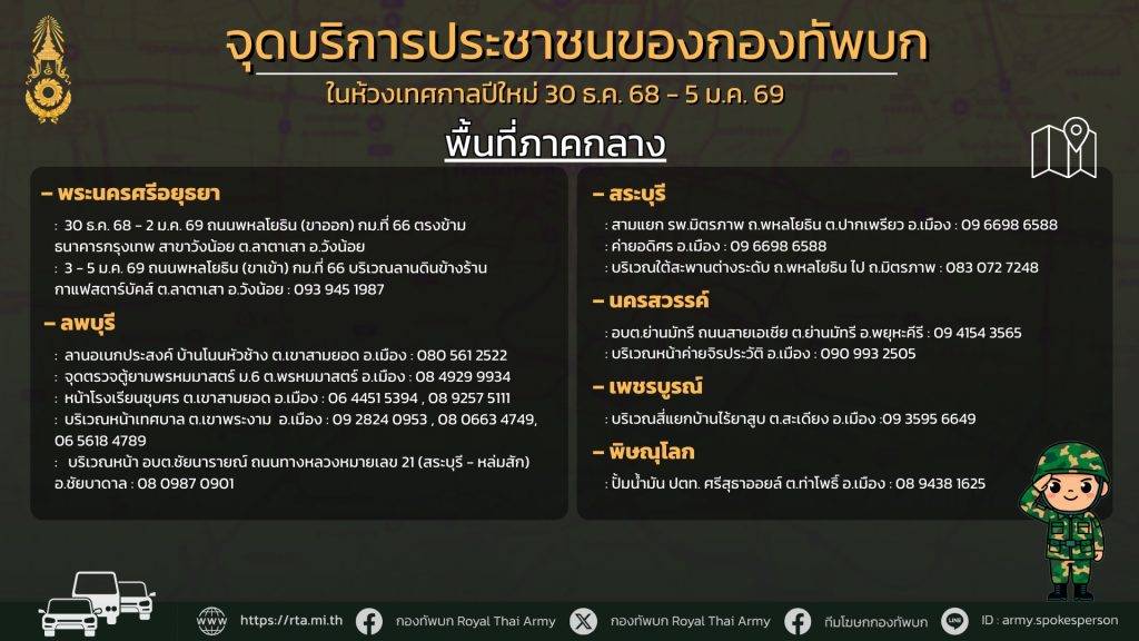 กองทัพบก ร่วมดูแลความปลอดภัยประชาชนช่วงเทศกาลปีใหม่ 2569 จัดตั้งจุดบริการประชาชนทั่วประเทศ