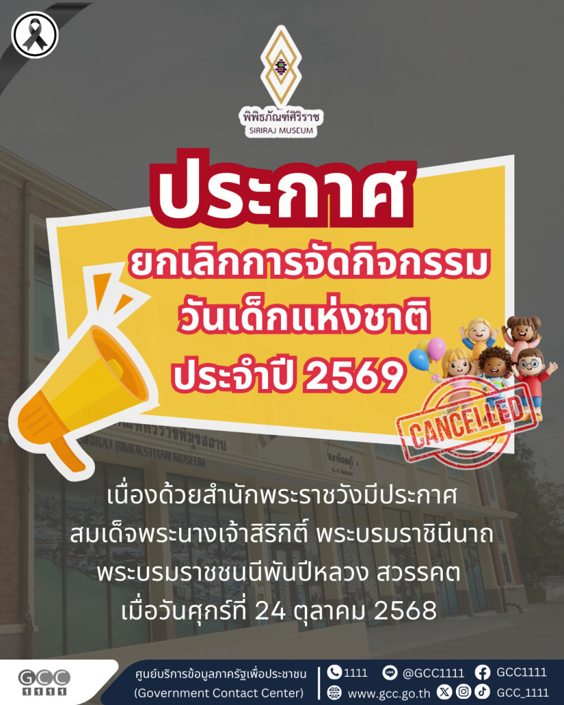 พิพิธภัณฑ์ศิริราช ประกาศยกเลิกการจัดกิจกรรมวันเด็กแห่งชาติ ประจำปี 2569