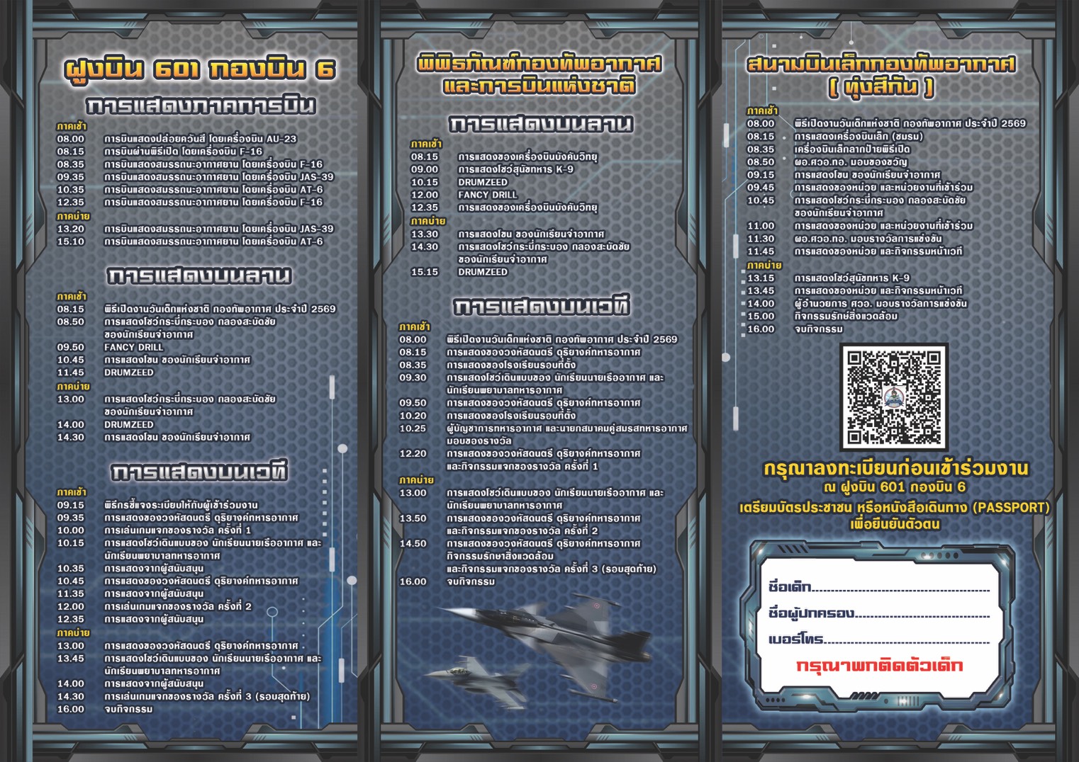 • สำหรับผู้ที่จะเข้าชม ณ ฝูงบิน 601 กองบิน 6 :