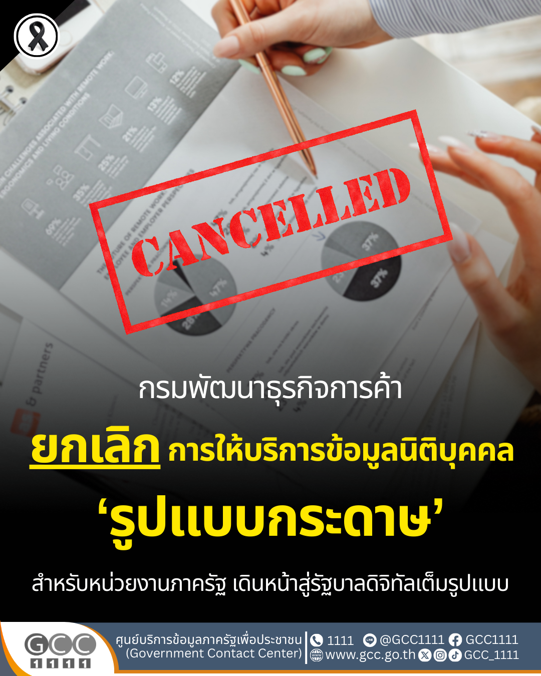 “การยกเลิกการให้บริการเอกสารในรูปแบบกระดาษ ไม่ใช่เพียงการลดการใช้ทรัพยากรเท่านั้น แต่คือการสร้างวัฒนธรรมใหม่ในการปฏิบัติราชการด้วยข้อมูลอิเล็กทรอนิกส์ที่โปร่งใส รวดเร็ว เป็นสากล และเป็นมิตรต่อสิ่งแวดล้อม กรมฯ จึงขอเชิญชวนหน่วยงานภาครัฐร่วมเปลี่ยนผ่านสู่การใช้บริการในรูปแบบอิเล็กทรอนิกส์ เพื่อขับเคลื่อนประเทศไทยสู่รัฐบาลดิจิทัลอย่างแท้จริง” อธิบดีพูนพงษ์ฯ กล่าวทิ้งท้าย