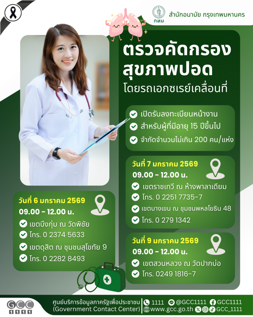 สำนักอนามัย กรุงเทพมหานคร ออกหน่วยตรวจคัดกรองสุขภาพปอด โดยรถเอกซเรย์เคลื่อนที่