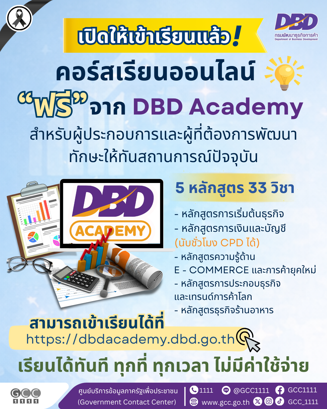 กรมพัฒนาธุรกิจการค้า เปิดคอร์สเรียนออนไลน์ ฟรี จาก DBD Academy ข่าวสารกิจกรรม กรมพัฒนาธุรกิจการค้า เปิดคอร์สเรียนออนไลน์ ฟรี จาก DBD Academy เปิดให้เข้าเรียนแล้ว คอร์สเรียนออนไลน์ ฟรี จาก DBD Academy ยกระดับความรู้ด้านธุรกิจแบบครบเครื่องกับ 5 หลักสูตร 33 วิชา เรียนได้ทันที ทุกที่ ทุกเวลา ไม่มีค่าใช้จ่าย สำหรับผู้ประกอบการและผู้สนใจเริ่มต้นธุรกิจและผู้ที่ต้องการพัฒนาทักษะให้ทันสถานการณ์ปัจจุบันยังมีหลักสูตรการเงินและการบัญชี (นับชั่วโมง CPD ได้)เนื้อหาคัดสรรโดยผู้เชี่ยวชาญเรียนออนไลน์ สะดวกความรู้พร้อมใช้ ต่อยอดได้จริงโอกาสดีๆ แบบนี้ อย่ารอช้า สมัครเรียนได้แล้ววันนี้ที่ https://dbdacademy.dbd.go.th/ ที่มา : Facebook : กรมพัฒนาธุรกิจการค้า Post Views: 35 FacebookFacebookXTwitterLINELine