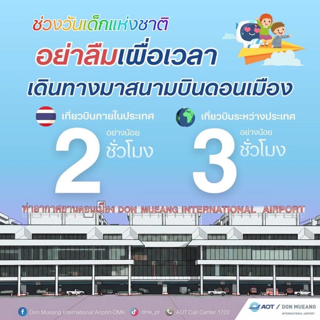 ทดม. แนะนำเผื่อเวลาเดินทางสนามบิน วันที่ 9 และ 10 มกราคม 2569 เนื่องจากมีงานวันเด็กแห่งชาติ