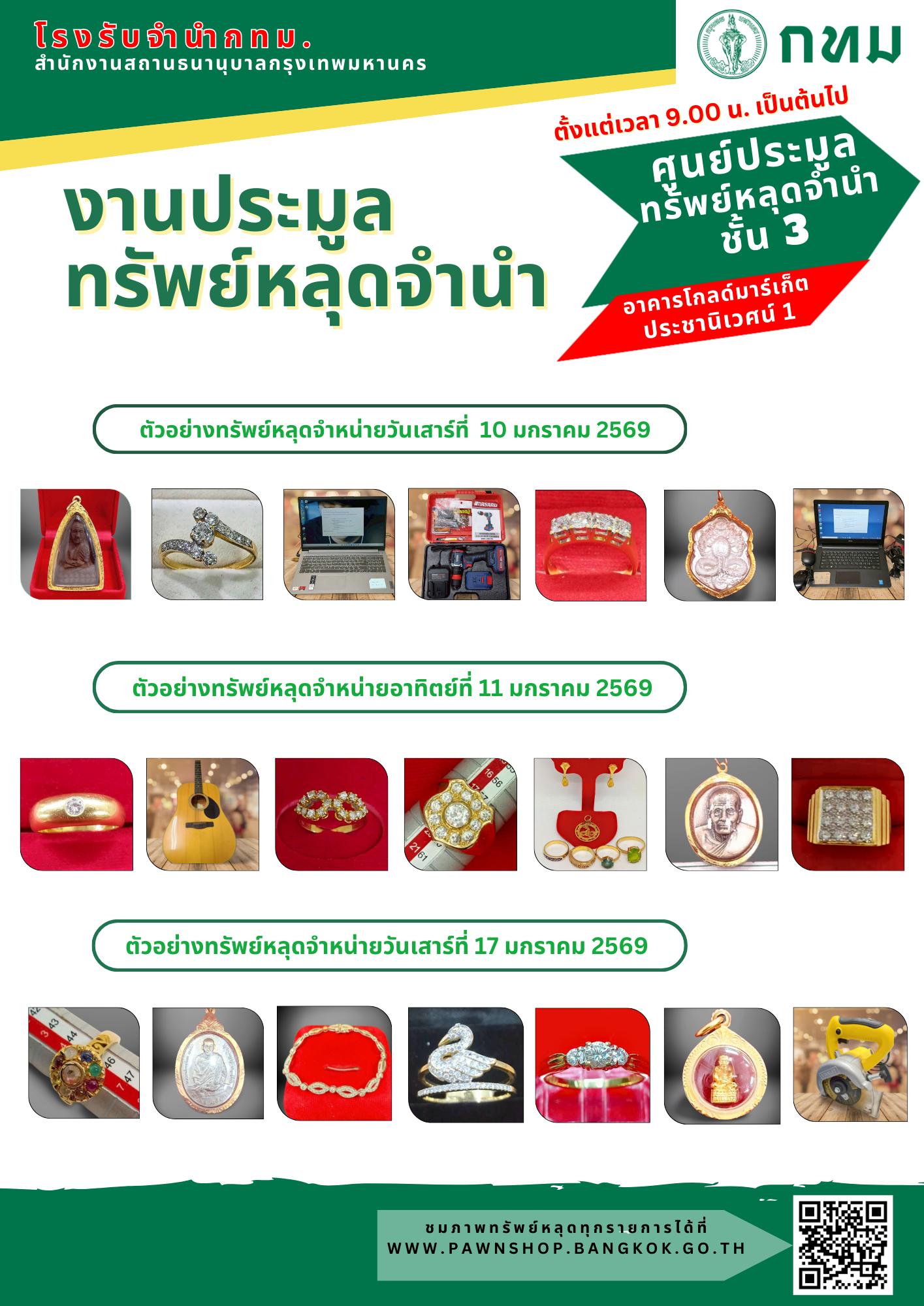 สถานธนานุบาลกรุงเทพมหานคร เปิดประมูลทรัพย์หลุดจำนำ เดือนมกราคม 2569