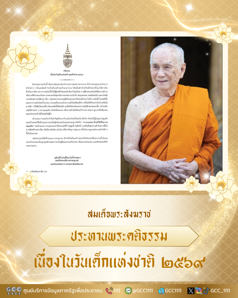 เจ้าพระคุณ สมเด็จอริยวงศาคตญาณ สมเด็จพระสังฆราช สกลมหาสังฆปริณายก ประทานพระคติธรรม เนื่องในวันเด็กแห่งชาติ พุทธศักราช 2569 ว่า