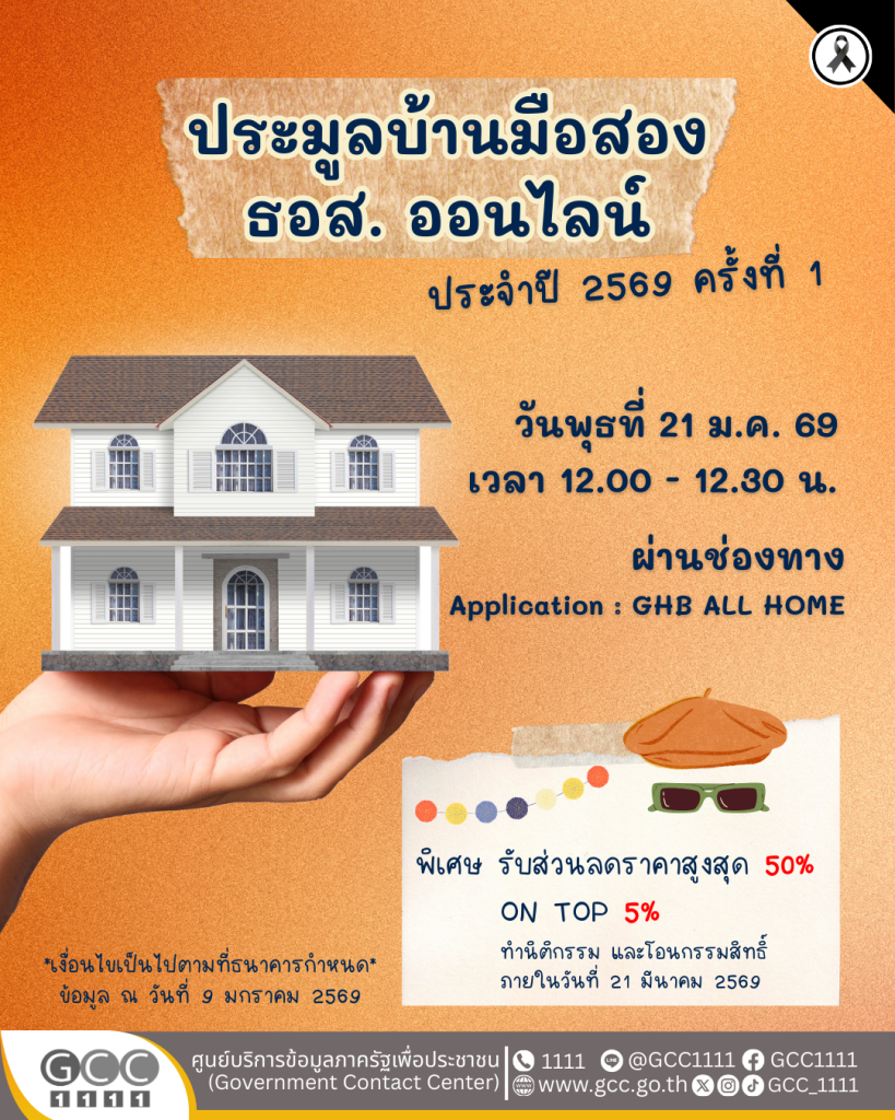ธนาคารอาคารสงเคราะห์ จัดงานประมูลบ้านมือสอง ธอส. ออนไลน์ ประจำปี 2569 ครั้งที่ 1 ข่าวสารกิจกรรม ธนาคารอาคารสงเคราะห์ จัดงานประมูลบ้านมือสอง ธอส. ออนไลน์ ประจำปี 2569 ครั้งที่ 1 ธนาคารอาคารสงเคราะห์ จัดงานประมูลบ้านมือสอง ธอส. ออนไลน์ ประจำปี 2569 ครั้งที่ 1 ในวันพุธที่ 21 มกราคม 2569 เวลา 12.00 – 12.30 น. ประมูลออนไลน์ ผ่านช่องทาง Application : GHB ALL HOME ธนาคารอาคารสงเคราะห์ จัดงานประมูลบ้านมือสอง ธอส. ออนไลน์ ประจำปี 2569 ครั้งที่ 1 ในวันพุธที่ 21 มกราคม 2569 เวลา 12.00 – 12.30 น. ประมูลออนไลน์ ผ่านช่องทาง Application : GHB ALL HOME พิเศษ รับส่วนลดราคาสูงสุด 50% และ ON TOP 5% (ทำนิติกรรม และโอนกรรมสิทธิ์ ภายในวันที่ 21 มีนาคม 2569) *เงื่อนไขเป็นไปตามที่ธนาคารกำหนด* ข้อมูล ณ วันที่ 9 มกราคม 2569 ที่มา : Facebook บ้านมือสอง ธอส. Post Views: 46 FacebookFacebookXTwitterLINELine