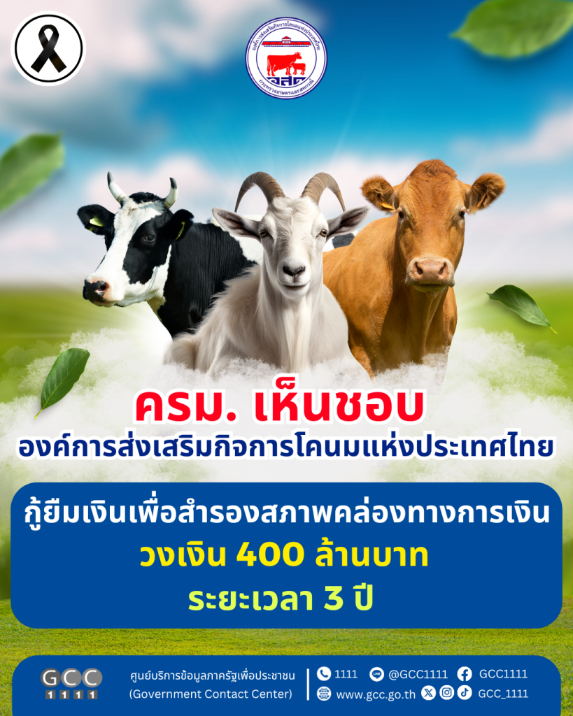 ครม.เห็นชอบ อ.ส.ค. กู้เงินเบิกเกินบัญชี 400 ล้านบาท เสริมสภาพคล่อง ช่วยรับซื้อน้ำนมดิบจากเกษตรกร