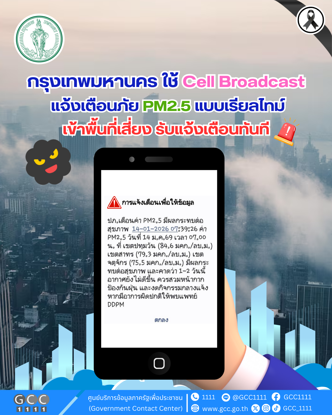 กรุงเทพมหานคร ใช้ Cell Broadcast แจ้งเตือนภัย PM2.5 แบบเรียลไทม์