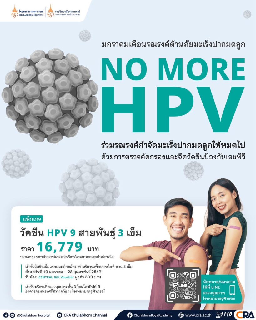 โรงพยาบาลจุฬาภรณ์ ราชวิทยาลัยจุฬาภรณ์ ร่วมรณรงค์ต้านภัยมะเร็งปากมดลูก NO MORE HPV