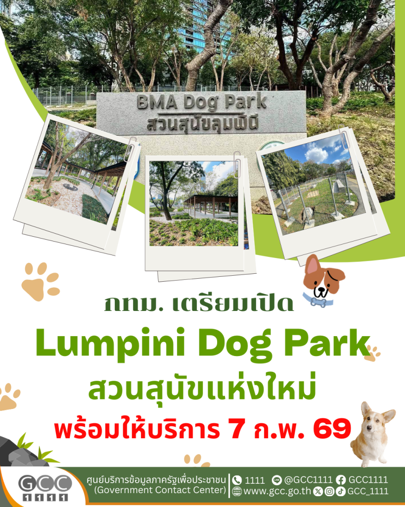 กทม. เตรียมเปิด “Lumpini Dog Park” สวนสุนัขแห่งใหม่ พร้อมให้บริการ 7 ก.พ. 69